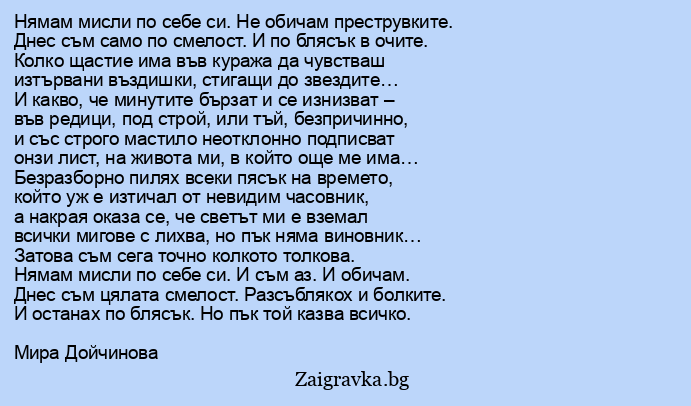 - С тоя, твоя, с който си на път да извършиш някоя нова глупост. Колкото и да се мисли умъдрен от живота, човек си остава дете в не малка степен.
