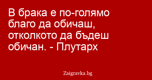 В брака е по-голямо благо да обичаш, отколкото да бъдеш обичан. - Плутарх