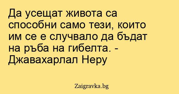 Да усещат живота са способни само тези, които им се е случвало да бъдат на ръба на гибелта. - Джавахарлал Неру