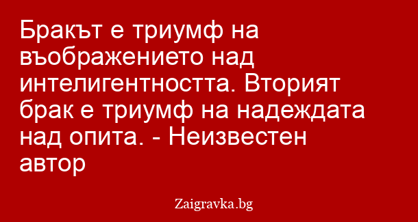 Бракът е триумф на въображението над интелигентността. Вторият брак е триумф на надеждата над опита. - Неизвестен автор