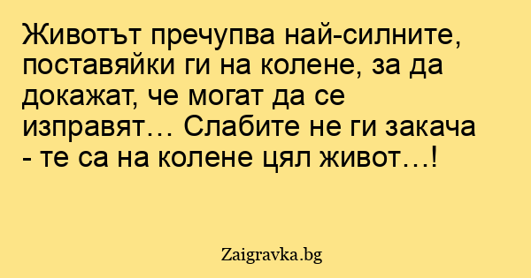Животът пречупва най-силните, поставяйки ги на колене, за да докажат, че могат да се изправят… Слабите не ги закача - те са на колене цял живот…!