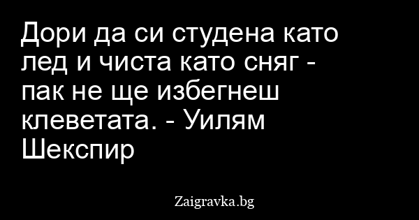 Дори да си студена като лед и чиста като сняг - пак не ще избегнеш клеветата. - Уилям Шекспир