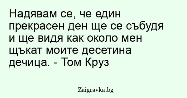 Надявам се, че един прекрасен ден ще се събудя и ще видя как около мен щъкат моите десетина дечица. - Том Круз