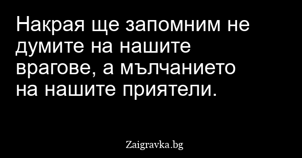 Накрая ще запомним не думите на нашите врагове, а мълчанието на нашите приятели.