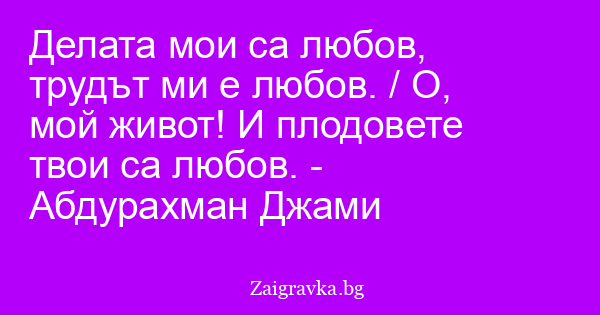 Делата мои са любов, трудът ми е любов. / О, мой живот! И плодовете твои са любов. - Абдурахман Джами