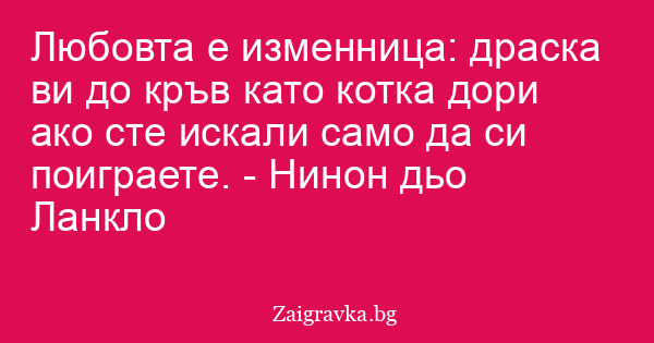Любовта е изменница: драска ви до кръв като котка дори ако сте искали само да си поиграете. - Нинон дьо Ланкло