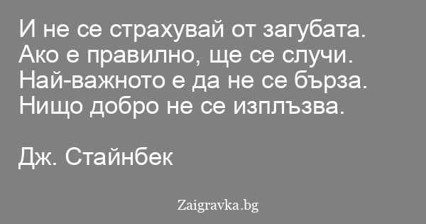 И не се страхувай от загубата. Ако е правилно, ще се случи. Най-важното е да не се бърза. Нищо добро не се изплъзва.