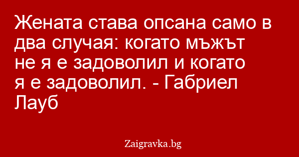 Жената става опсана само в два случая: когато мъжът не я е задоволил и когато я е задоволил. - Габриел Лауб