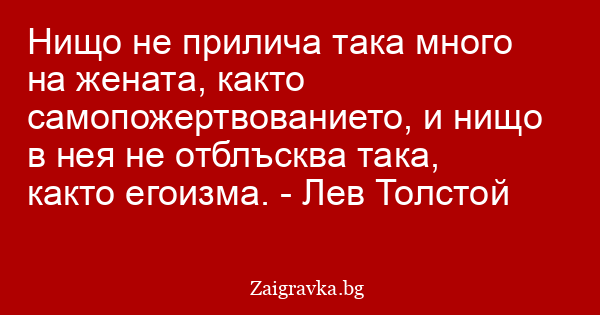 Нищо не прилича така много на жената, както самопожертвованието, и нищо в нея не отблъсква така, както егоизма. - Лев Толстой