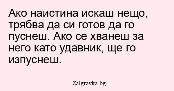 Ако наистина искаш нещо, трябва да си готов да го пуснеш. Ако се хванеш за него като удавник, ще го изпуснеш.