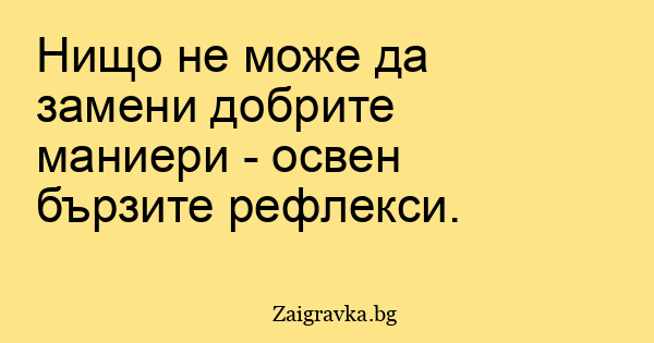Нищо не може да замени добрите маниери - освен бързите рефлекси.