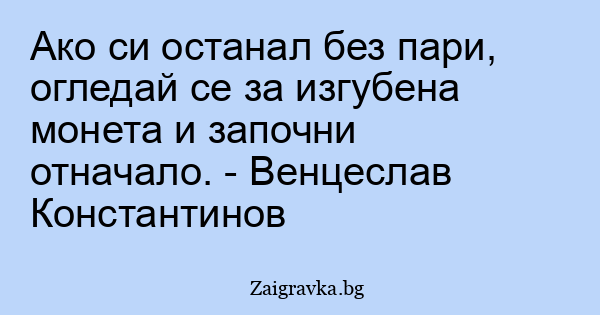 Ако си останал без пари, огледай се за изгубена монета и започни отначало. - Венцеслав Константинов