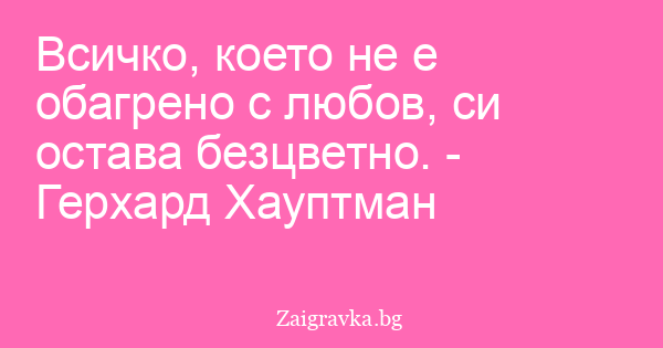 Всичко, което не е обагрено с любов, си остава безцветно. - Герхард Хауптман