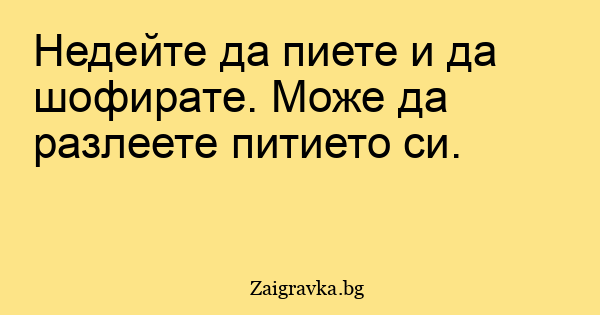 Недейте да пиете и да шофирате. Може да разлеете питието си.