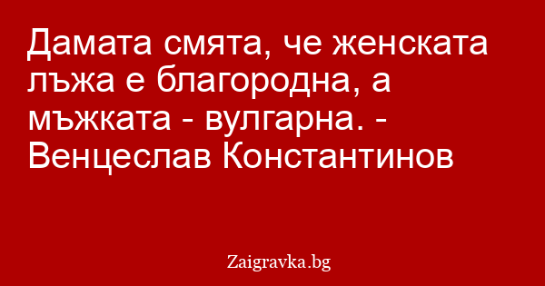 Дамата смята, че женската лъжа е благородна, а мъжката - вулгарна. - Венцеслав Константинов