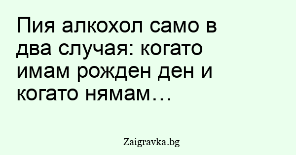 Пия алкохол само в два случая: когато имам рожден ден и когато нямам…