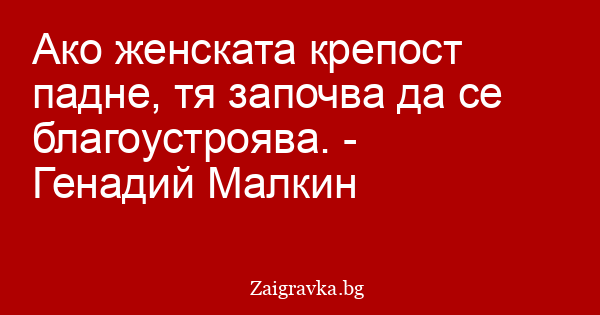 Ако женската крепост падне, тя започва да се благоустроява. - Генадий Малкин