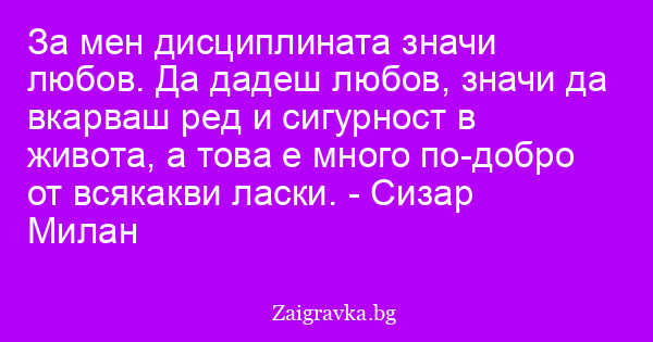 За мен дисциплината значи любов. Да дадеш любов, значи да вкарваш ред и сигурност в живота, а това е много по-добро от всякакви ласки. - Сизар Милан