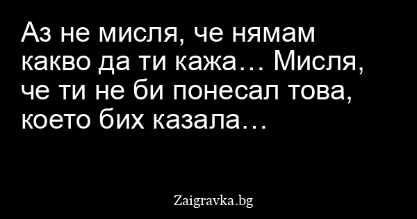 Аз не мисля, че нямам какво да ти кажа… Мисля, че ти не би понесал това, което бих казала…