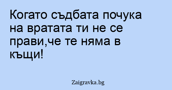 Когато съдбата почука на вратата ти не се прави,че те няма в къщи!