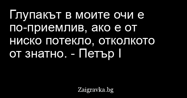 Глупакът в моите очи е по-приемлив, ако е от ниско потекло, отколкото от знатно. - Петър I