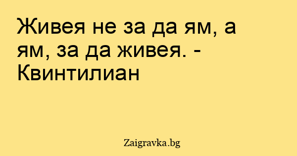 Живея не за да ям, а ям, за да живея. - Квинтилиан