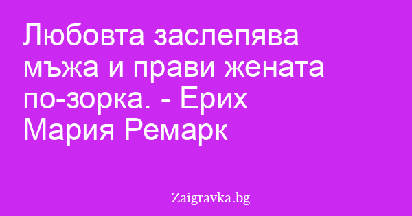 Любовта заслепява мъжа и прави жената по-зорка. - Ерих Мария Ремарк
