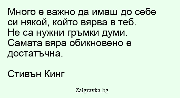 Много е важно да имаш до себе си някой, който вярва в теб. Не са нужни гръмки думи. Самата вяра обикновено е достатъчна.