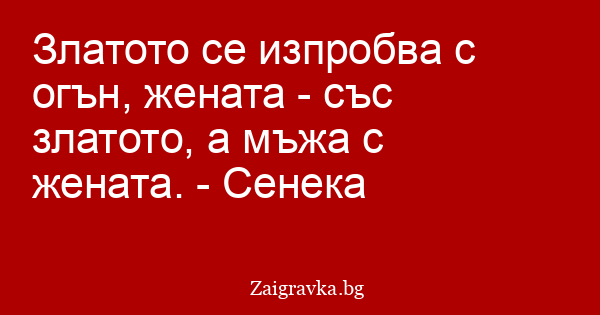 Златото се изпробва с огън, жената - със златото, а мъжа с жената. - Сенека