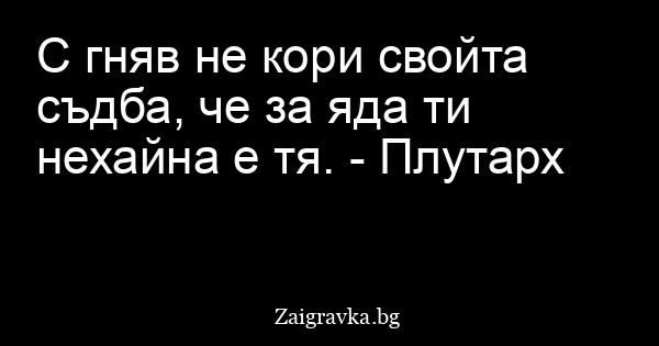 С гняв не кори свойта съдба, че за яда ти нехайна е тя. - Плутарх