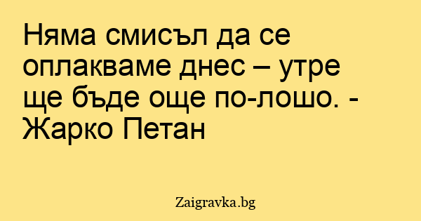 Няма смисъл да се оплакваме днес – утре ще бъде още по-лошо. - Жарко Петан