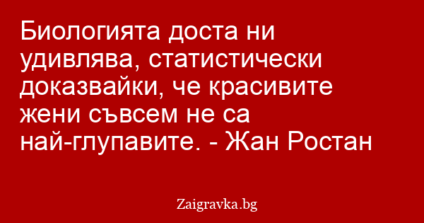 Биологията доста ни удивлява, статистически доказвайки, че красивите жени съвсем не са най-глупавите. - Жан Ростан