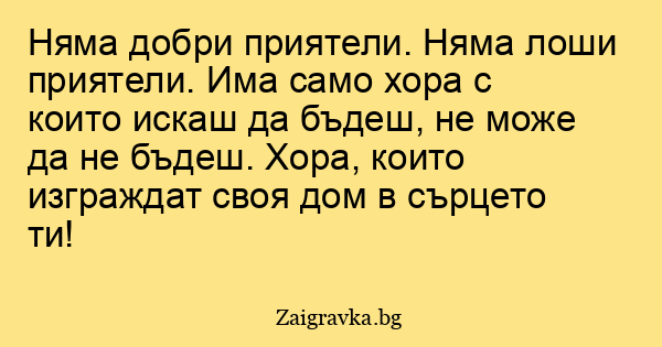 Няма добри приятели. Няма лоши приятели. Има само хора с които искаш да бъдеш, не може да не бъдеш. Хора, които изграждат своя дом в сърцето ти!