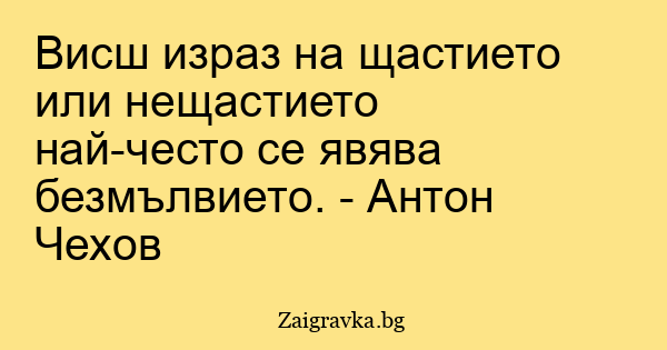 Висш израз на щастието или нещастието най-често се явява безмълвието. - Антон Чехов