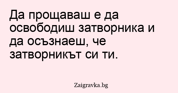 Да прощаваш е да освободиш затворника и да осъзнаеш, че затворникът си ти.