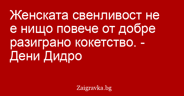 Женската свенливост не е нищо повече от добре разиграно кокетство. - Дени Дидро