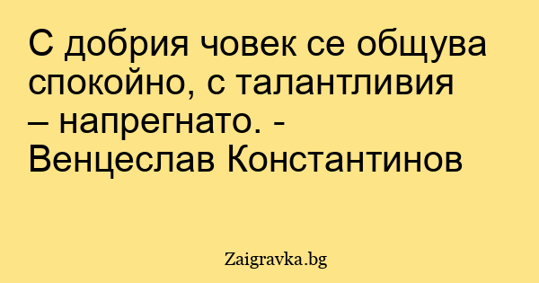 С добрия човек се общува спокойно, с талантливия – напрегнато. - Венцеслав Константинов