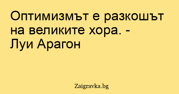 Оптимизмът е разкошът на великите хора. - Луи Арагон