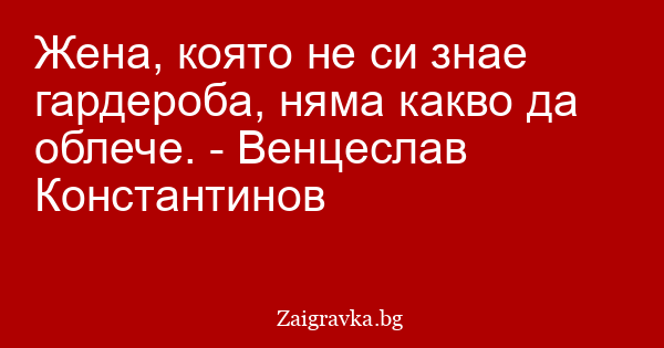 Жена, която не си знае гардероба, няма какво да облече. - Венцеслав Константинов