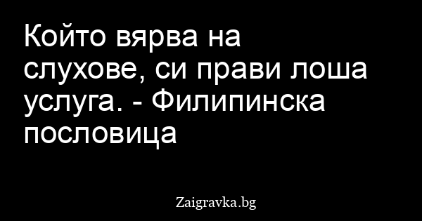 Който вярва на слухове, си прави лоша услуга. - Филипинска пословица