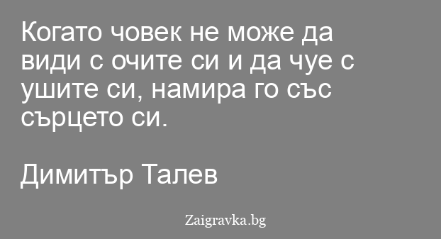 Когато човек не може да види с очите си и да чуе с ушите си, намира го със сърцето си.