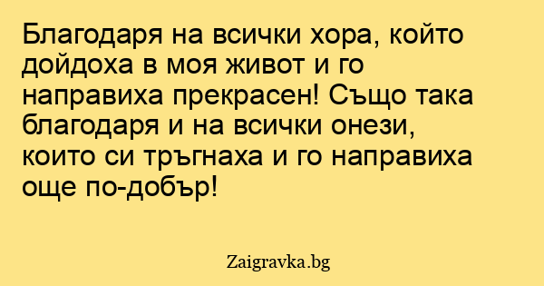 Благодаря на всички хора, който дойдоха в моя живот и го направиха прекрасен! Също така благодаря и на всички онези, които си тръгнаха и го направиха още по-добър!