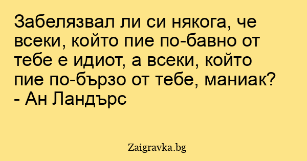 Забелязвал ли си някога, че всеки, който пие по-бавно от тебе е идиот, а всеки, който пие по-бързо от тебе, маниак? - Ан Ландърс