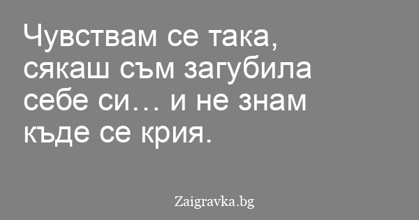 Чувствам се така, сякаш съм загубила себе си… и не знам къде се крия.