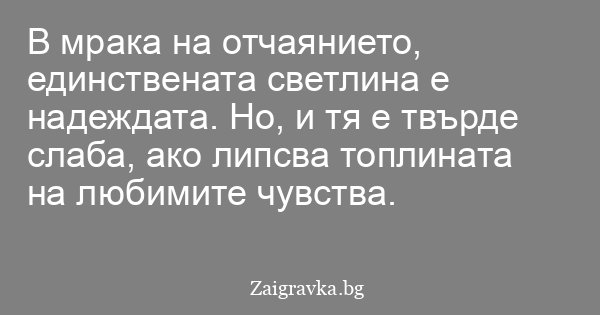 В мрака на отчаянието, единствената светлина е надеждата. Но, и тя е твърде слаба, ако липсва топлината на любимите чувства.