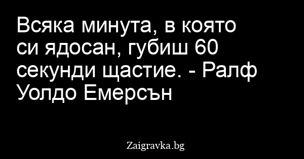 Всяка минута, в която си ядосан, губиш 60 секунди щастие. - Ралф Уолдо Емерсън