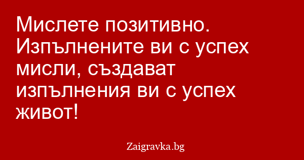 Мислете позитивно. Изпълнените ви с успех мисли, създават изпълнения ви с успех живот!