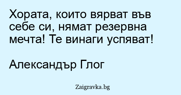 Хората, които вярват във себе си, нямат резервна мечта! Те винаги успяват!