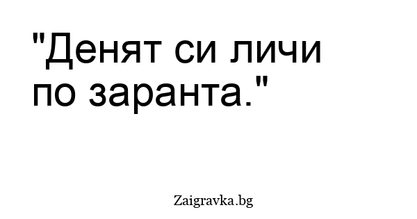 Заигравка » Цитати » Други » Денят си личи по зар Разни мъдрости, мисли и цитати ВраговеВремеДоброДругиДушатаЖенитеЖивотаЖивотниЗлоИзточниИстинатаКрасотаЛичностЛъжатаЛюбовМечтитеМъжетеМъкаНадеждаНастроениеПариПриятелствоРаботаСватбаСвободаСексСтрахСъветСъдбаУсмивкитеУспехУтехаХораЦелувкитеЩастие "Денят си личи по заранта." « Предишна Следваща » Подобни цитати "Дебел сняг – голям комат." Добавен преди 11 години "Двама се карат, трети печели." Добавен преди 11 години "Два остри камъка брашно не мелят." Добавен преди 11 години "Да би мирно седяло, не би чудо видяло." Добавен преди 11 години "Гузен негонен бяга." Добавен преди 11 години