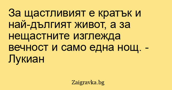 За щастливият е кратък и най-дългият живот, а за нещастните изглежда вечност и само една нощ. - Лукиан